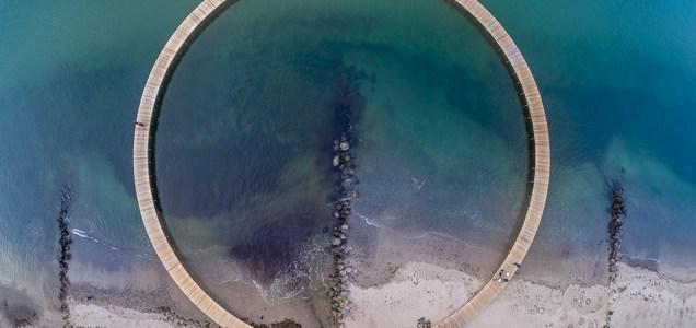 Gj?de & Povlsgaard Arkitekter事務(wù)所一座名叫“無限之橋”的海邊景觀建筑。圓形結(jié)構(gòu)的橋梁將會(huì)隨著潮汐的漲落而在海平面上起伏。那些行走在“無限之橋”的游客們將會(huì)隨著橋梁的起伏而起伏,且在橋上可以從各個(gè)角度欣賞海洋的美景,欣賞到從前難以觀看到的景色,無論是從高度還是角度上都給人一種極致到無法想象的享受。