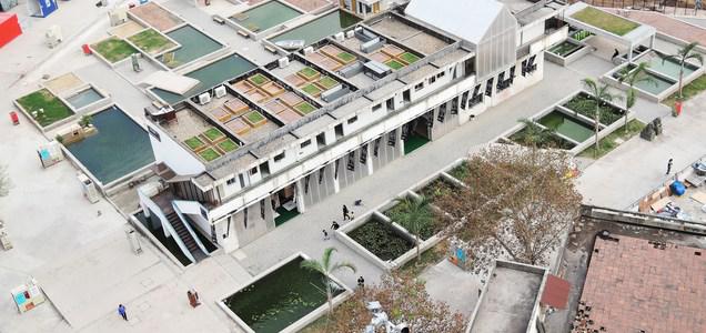 Floating Fields是一些戶外、淺狀的矩形分區(qū),一些里面是生長的田地,其他是水上漂浮著一些生長有植物的盒子。它們一起構(gòu)成了多循環(huán)生態(tài),如養(yǎng)有魚、鴨的堤壩池塘、養(yǎng)耕共生、藻類養(yǎng)殖以及濾水池。