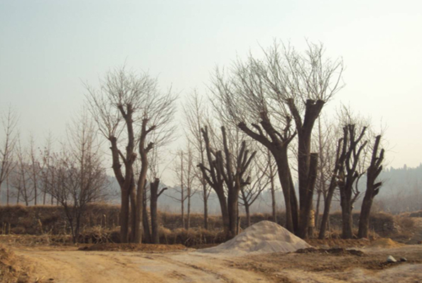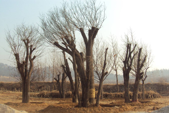 道路兩側(cè)的節(jié)點(diǎn)地塊是整個(gè)苗圃的突出點(diǎn),因此節(jié)點(diǎn)地塊的景觀配置關(guān)系到整個(gè)苗圃的視覺效果。為了營造節(jié)點(diǎn)地塊的景觀效果,苗圃工作人員按照突出特色、串聯(lián)全局的原則,采用叢生國槐、國槐、五角楓、銀杏等樹種,為苗圃二期添加了一抹亮麗的風(fēng)采。