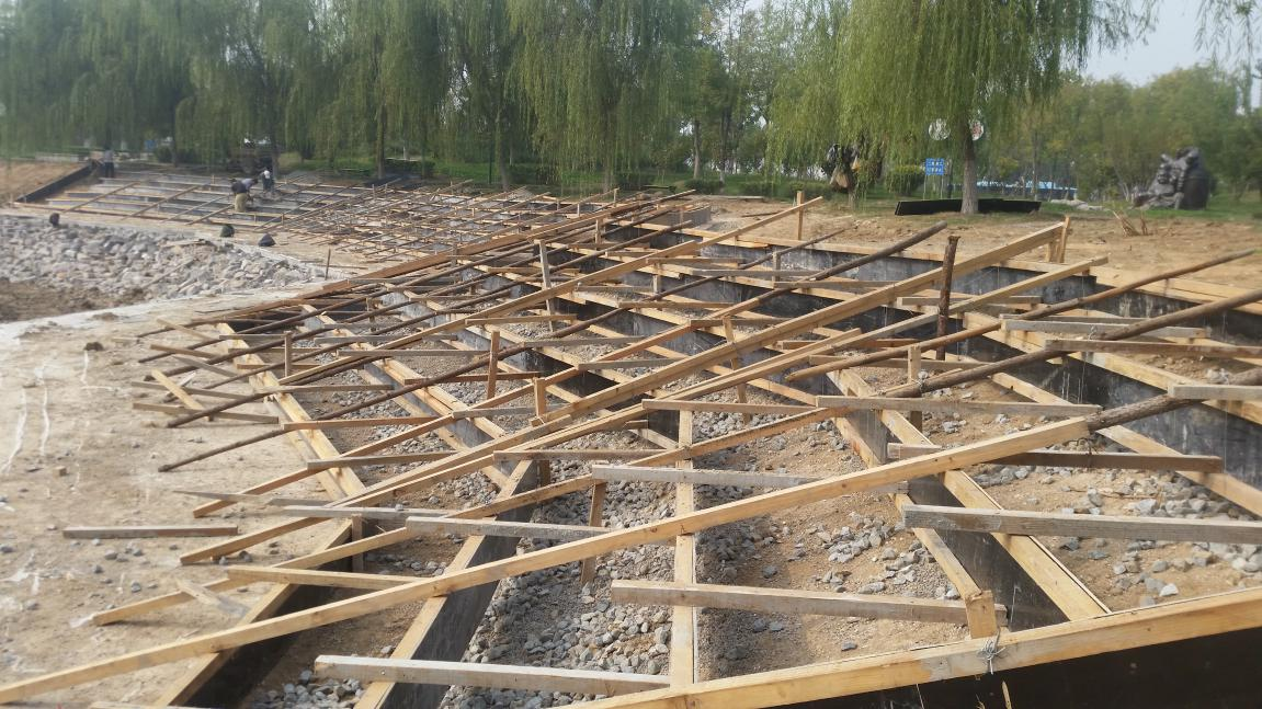 截止目前為止,東營錦華雕塑公園工程臺階制作約完成80%、園路基礎制作約完成45%,澆筑混凝土擋墻、打木樁的工作已經完美收官。后期以湖面木棧道平臺為主進行緊張施工。項目部根據現場實際需要和業主要求,制定施工計劃,為后期施工明確清晰的思路和方法,盡心盡力為業主交一份滿意答卷。